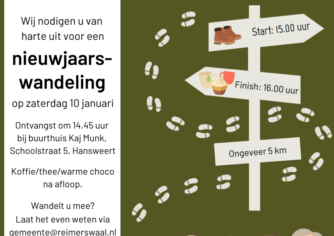 Het college van burgemeester en wethouders en kinderburgemeester Ralph nodigen u uit voor een nieuwjaarswandeling op zaterdag 10 januari in en om Hansweert.